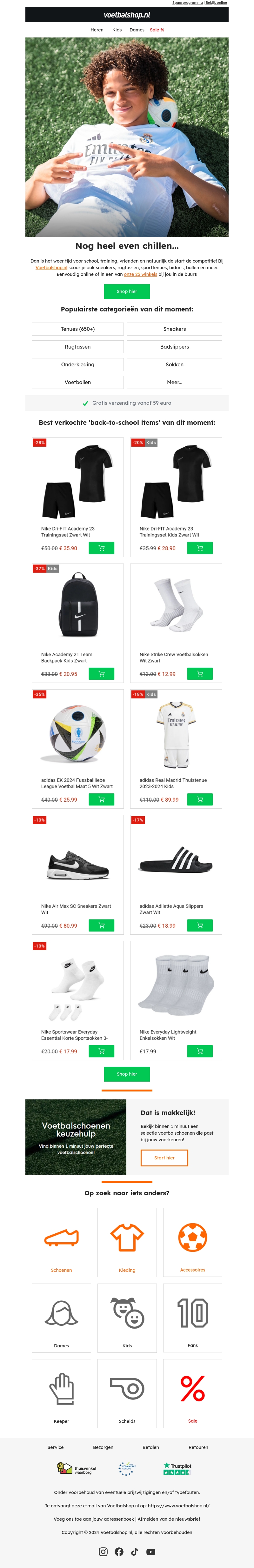 Het nieuwe (school)seizoen is in aantocht! Voetbalshop.nl biedt een breed assortiment aan kleding, schoenen en accessoires voor de beste start. Profiteer van speciale kortingen en gratis verzending vanaf 99 euro.