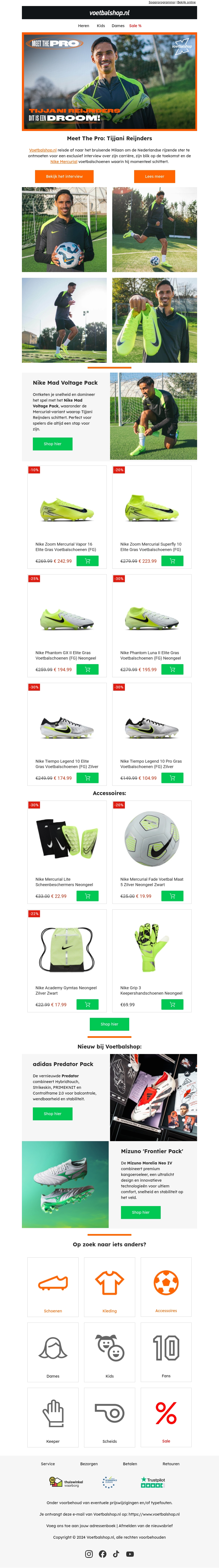 Maak kennis met Tijjani Reijnders, dé professional die zijn droom waarmaakt. Ontdek de nieuwste voetbaluitrusting geïnspireerd door zijn prestaties. Bekijk de exclusieve Nike Mad Voltage Pack en andere topdeals met kortingen tot 33%. Mis deze kans niet om je voetbalspel naar een hoger niveau te tillen met hoogwaardige gear.