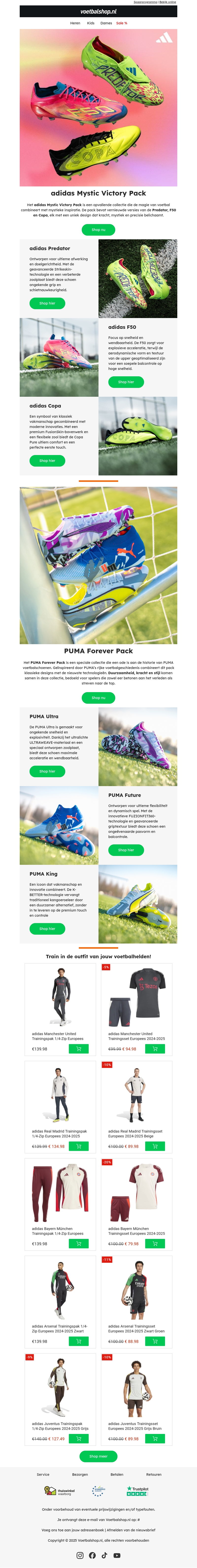 Ontdek de nieuwste releases van adidas met de Mystic Victory Pack en PUMA met de Forever Pack. Beide collecties bieden een innovatieve en stijlvolle benadering van sportmode, perfect voor elke sportliefhebber. Verken de krachtige prestaties en het opvallende ontwerp van deze speciale edities. Upgrade je spel met de nieuwste technologieën en opvallende kleuren. Ideaal voor spelers die op zoek zijn naar zowel stijl als functionaliteit. Bekijk nu en profiteer van spectaculaire aanbiedingen!