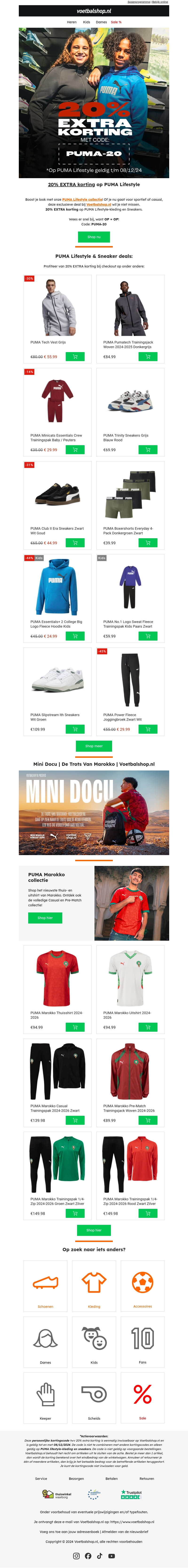 Vier pakjesavond met een speciale aanbieding: 20% extra korting op PUMA lifestyle-kleding en sneakers. Ontdek de nieuwste collecties en geniet van stijlvolle sportkleding en comfortabele sneakers. De aanbieding geldt tot 03.12.2024, dus sla snel je slag. Vergeet niet de kortingscode te gebruiken bij je aankoop. Perfect voor de feestdagen en het sportieve najaar. Bekijk de selectie online en bestel direct.