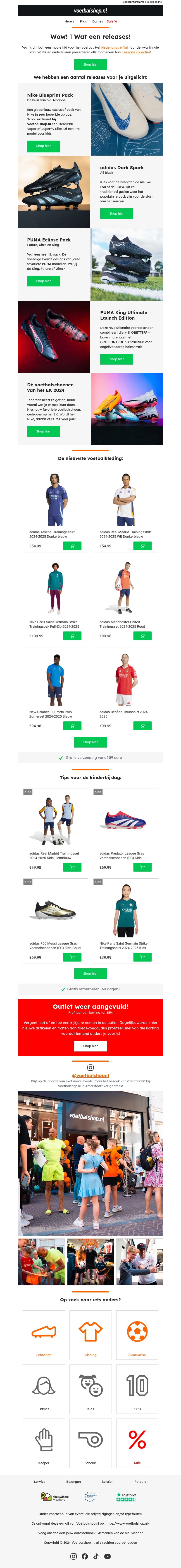 Ontdek de nieuwste releases van topmerken zoals Nike, adidas en PUMA. Van gloednieuwe voetbalschoenen tot exclusieve kledingcollecties, wij hebben het allemaal. Mis de speciale kortingen niet en shop nu bij voetbalsjop.nl voor de beste deals!