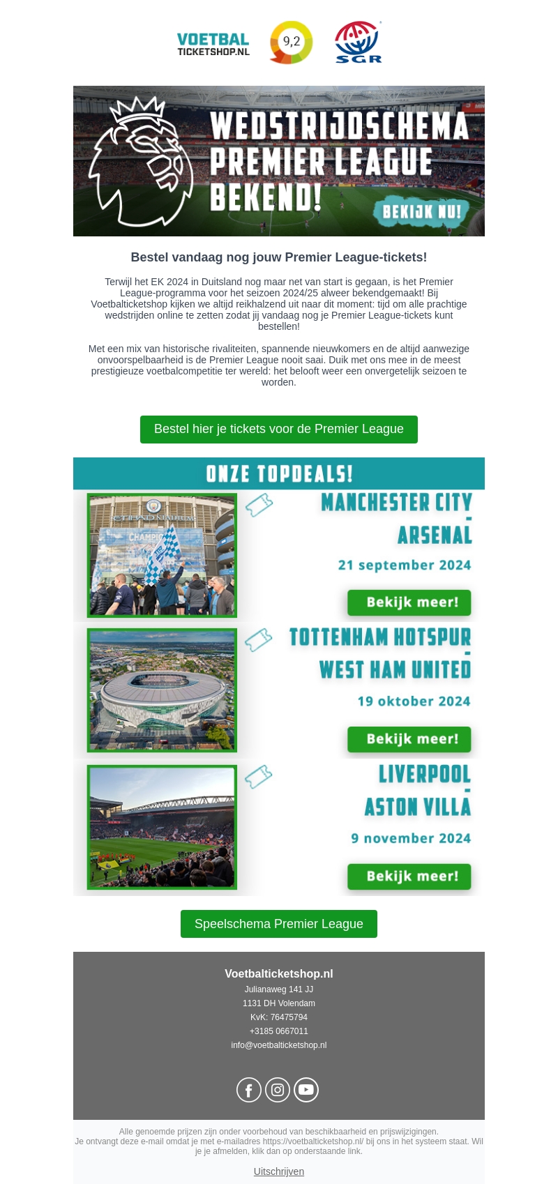 Met het EK 2024 net begonnen, is het tijd om je Premier League-tickets voor het seizoen 2024/25 te bestellen! Geniet van spannende rivaliteiten en nieuwe talenten. Mis deze kans niet en beleef een onvergetelijk voetbalseizoen!