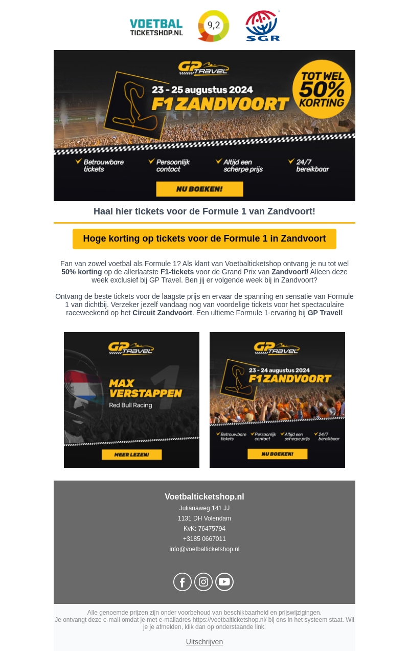 Fan van zowel voetbal als Formule 1? Ontvang nu tot wel 50% korting op de nieuwste F1-tickets voor de Grand Prix in Zandvoort! Exclusief bij GP Travel. Ben jij er volgend jaar bij? Verzeker jezelf vandaag van voordelige tickets en ervaar de spanning van Zandvoort.