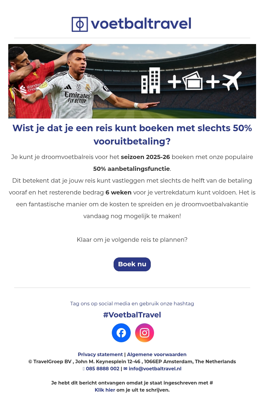 Betaal 50% aan en boek vandaag nog je droomvoetbalreis!⚽✈️
