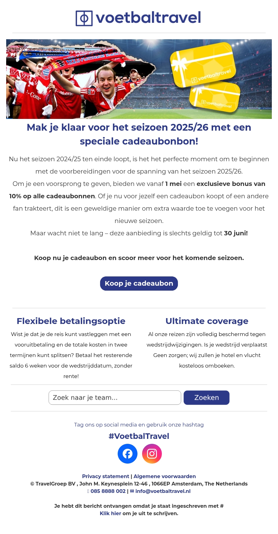 Speciale aanbieding: ontvang 10% extra op de aankoop van een cadeaubon🎁⚽