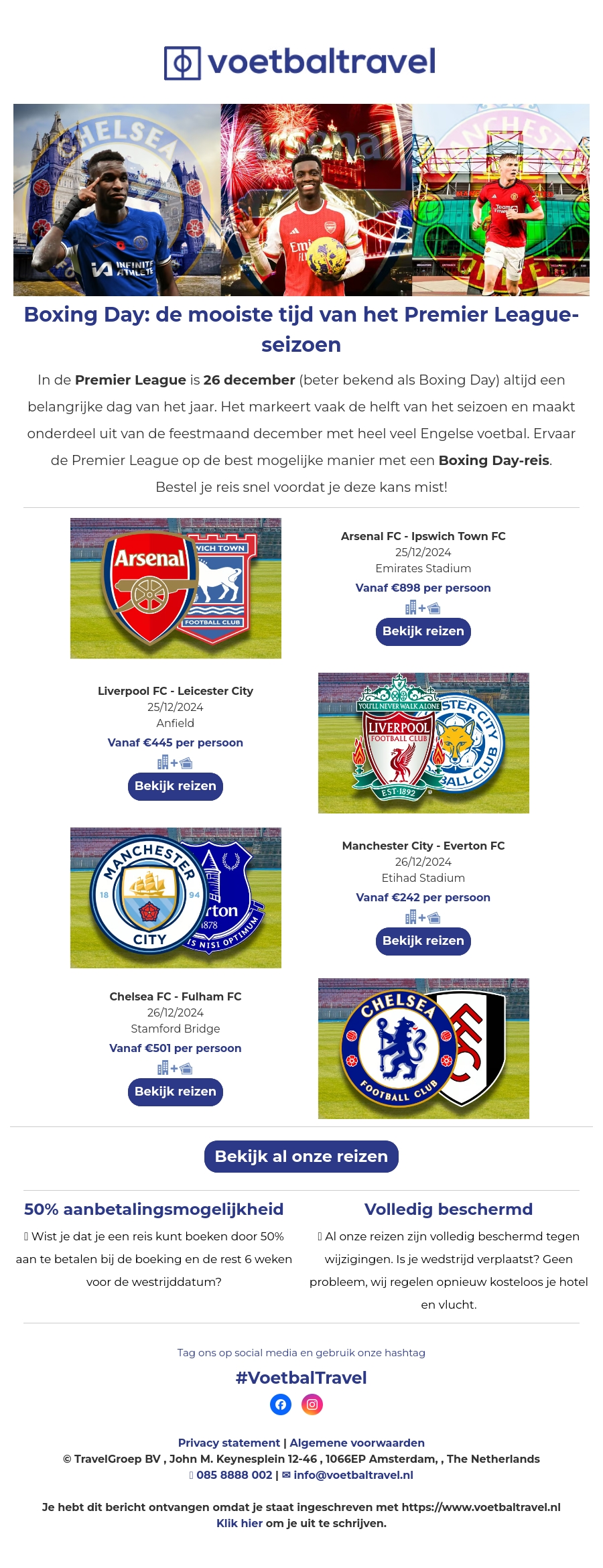 Voetbalreizen voor tweede kerstdag verkopen snel!