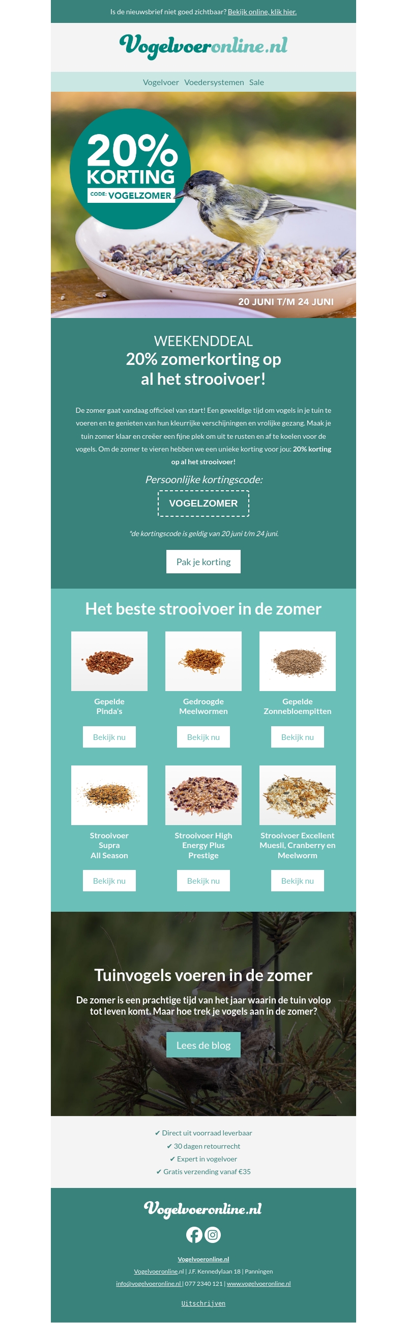 WEEKENDDEAL - 20% zomerkorting op al het strooivoer 🐦️💚