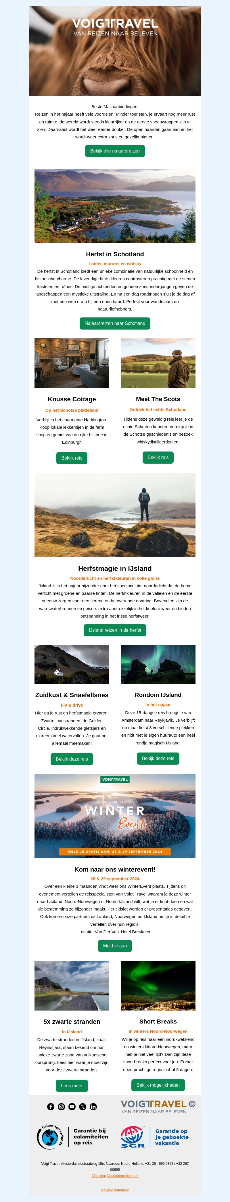 Reizen naar Schotland en IJsland dit najaar biedt vele voordelen. Geniet van rust, ruimte, en adembenemende herfstlandschappen. Verken de Schotse hooglanden, charmante cottages en de mystieke uitzichten van IJsland. Boek nu je reis met Voigt Travel!