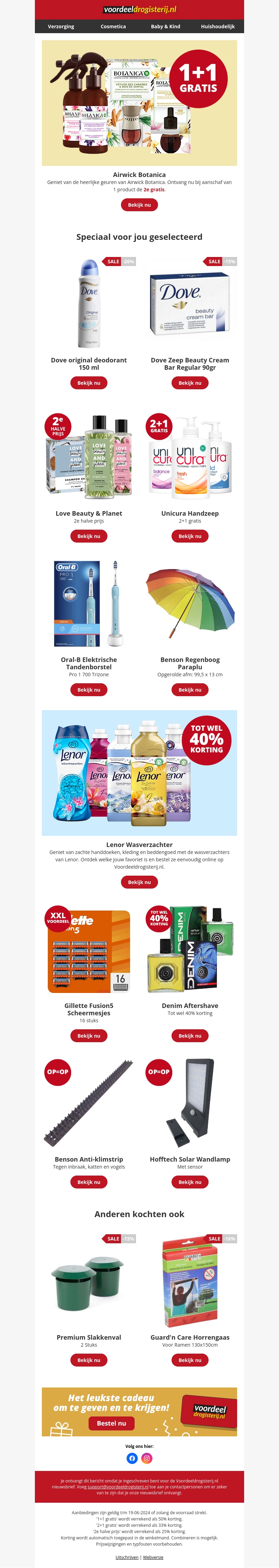 Profiteer van de nieuwste aanbiedingen! Airwick Botanica producten nu 1+1 gratis en Love Beauty & Planet voor de halve prijs. Daarnaast bieden we ook Unicura handzeep en Oral-B elektrische tandenborstels aan met geweldige kortingen. Mis het niet en shop nu bij Voordeeldrogisterij.nl.