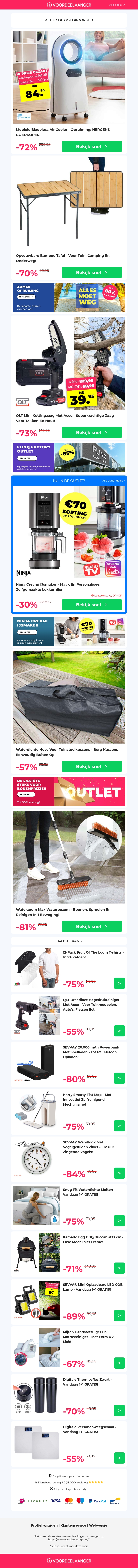 Profiteer nu van €15 extra korting op verschillende populaire producten zoals de Bladeless Air Cooler, Oprolbare Bamboe Tafel, Mini Kettingzaag en andere geweldige aanbiedingen. Bekijk snel de deals van deze week en bespaar flink op uw aankopen!