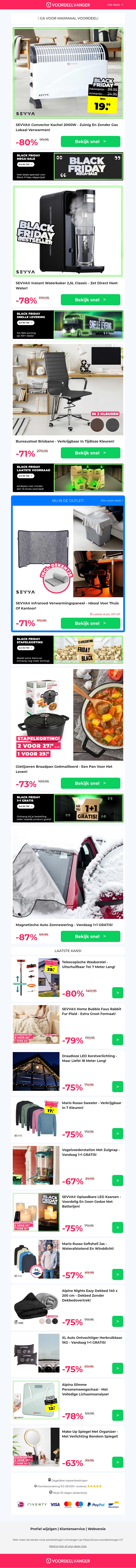 π 20% Extra Black Friday Korting: Convector Kachel 2000W / Instant Waterkoker / Bureaustoel / Gietijzeren Braadpan / Voorruitscherm 1+1