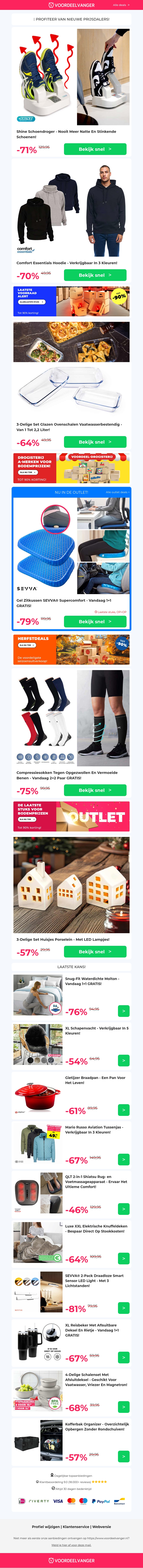 Profiteer deze week van kortingen tot wel 81% op een groot scala aan producten. Of je nu op zoek bent naar een praktische schoenendroger, comfortabele hoodies of stijlvolle glazen ovenschalen, wij hebben het voor je! Mis ook de aanbieding voor compressiesokken niet. Verlicht je huis met onze porseleinen LED huisjes, perfect voor elke gelegenheid. Bekijk de aanbiedingen en bespaar vandaag nog.