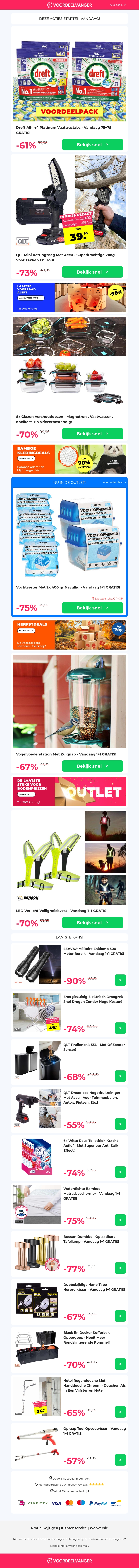 Profiteer van fantastische aanbiedingen deze week! Ontvang 75+75 gratis op Dreft Platinum vaatwastabs, perfect voor een sprankelende vaat. Zoek je nieuwe gereedschappen? Pak de accu kettingzaag voor een voordelige prijs. Bewaar je maaltijden vers met 8x glazen vershouddozen en zorg voor de vogels met een vogelvoederstation. Vergeet niet te kijken naar het verlichte vest voor veiligheid in het donker.