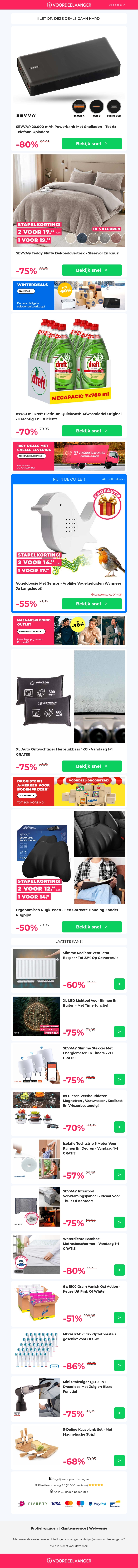 Deze nieuwsbrief biedt tot 80% korting op diverse producten zoals krachtige powerbanks, teddy dekbedovertrekken, Dreft afwasmiddel en handige auto-ontvochtigers. Grijp deze kans om je favoriete items tegen gereduceerde prijzen aan te schaffen. Vergeet niet je rugkussen ook te bekijken voor ultiem comfort.