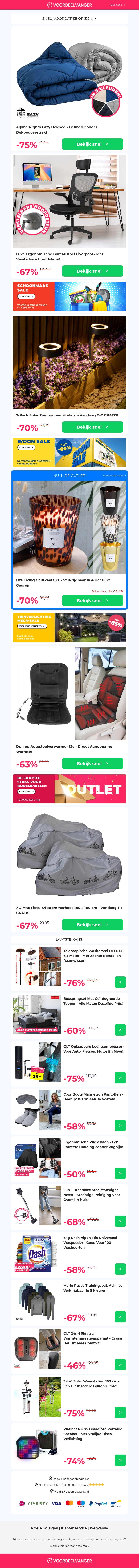 Profiteer van enorme kortingen op een verscheidenheid aan artikelen, waaronder Eazy dekbedden zonder overtrek met 75% korting. Vind ook de perfecte bureaustoel met hoofdsteun en bespaar 67%. Voor buitengebruik zijn er solar tuinlampen in de aanbieding, en autostoelwarmers maken autorijden comfortabeler. Vergeet de fietshoes niet in een ongelofelijke 1+1 aanbieding. Mis deze bijzondere deals niet!
