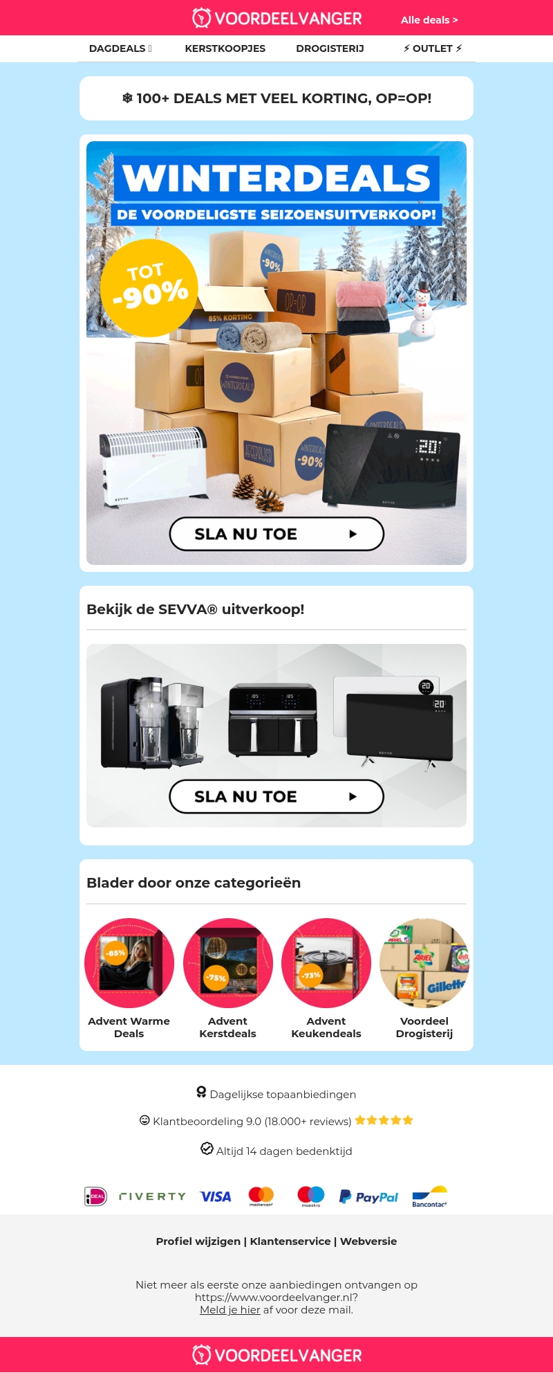Profiteer van de grote winteruitverkoop met hoge kortingen op diverse producten zoals elektrische kachels en warme dekens. Deze deals zijn perfect voor de koude maanden. Bekijk ook de SEVVAยฎ uitverkoop voor nog meer scherpe aanbiedingen. De korting kan oplopen tot wel 90%! Wees er snel bij, want op=op!