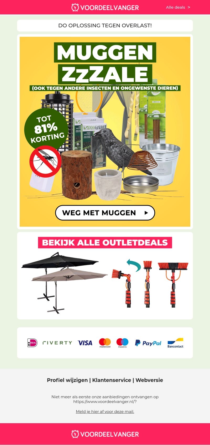 Dit is jouw kans om voorgoed af te rekenen met muggen en andere vervelende insecten. Maak gebruik van onze speciale muggenplagen zzzale en ontdek producten met kortingen tot 81%. Bekijk ook onze outletdeals voor nog meer besparingen. Mis deze kans niet en zorg voor een mugvrije zomer!
