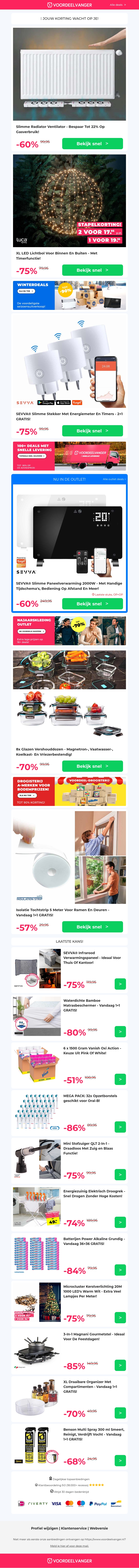 Deze nieuwsbrief biedt geweldige kortingen tot 60% op een reeks innovatieve huisartikelen. Ontdek de nieuwste radiator ventilatoren, XL LED lichtbollen en slimmere stekkers. Mis de speciale aanbieding van vershouddozen en isolatie tochtstrips niet. Ideaal voor wie wil besparen en toch kwaliteit zoekt. Duik in de details van onze aanbiedingen en verbeter je huis zonder de prijs.