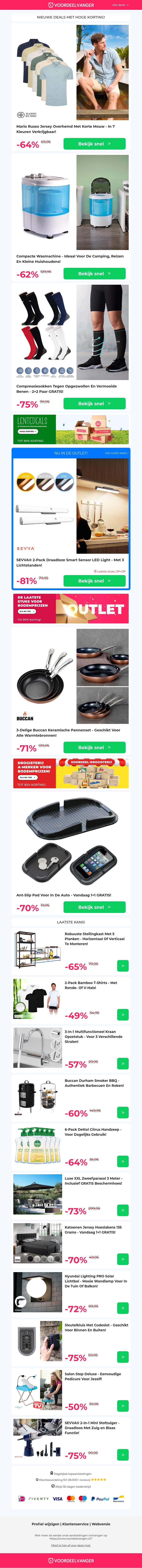 Ontvang deze week gigantische kortingen tot 75% op een breed scala aan producten zoals jersey overhemden, compacte wasmachines, compressiesokken, en pannensets. Mis deze kans niet om te besparen op kwalitatieve items. Inclusief gratis verzending!