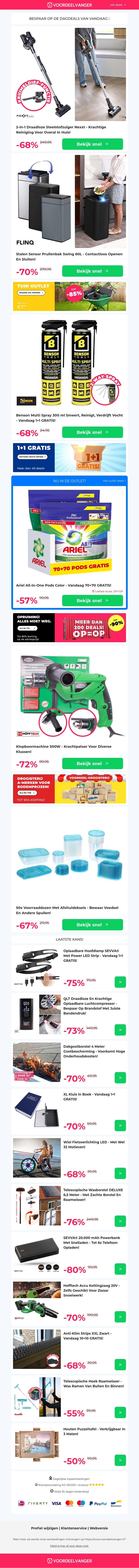 ✨ NIEUW: Snoerloze Stofzuiger -68% Korting / Stalen Sensor Prullenbak / Multi Spray 1+1 / Klopboormachine / 50x Voorraaddozen