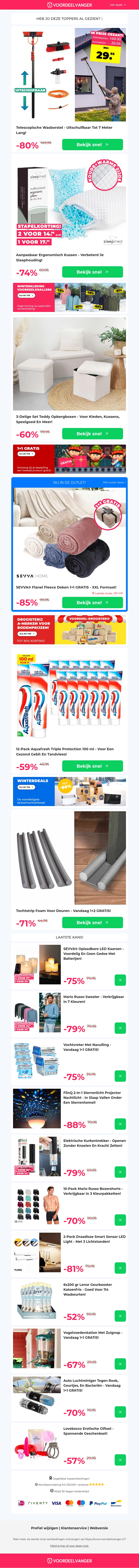 π¦ NIEUWE VOORRAAD: 25% Extra Korting Op Telescopische Wasborstel / Ergonomisch Kussen / Teddy Opbergboxen / Aquafresh Tandpasta / Tochtstopper