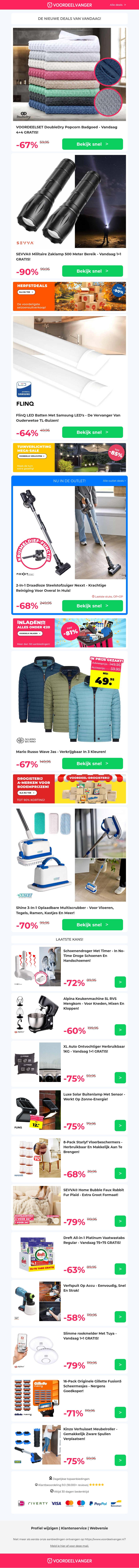 Profiteer nu van geweldige deals waaronder Popcorn Badgoed 4+4 gratis, krachtige militaire zaklampen, energiezuinige LED TL Buizen, en de comfortabele Wave Jas. Mis niet de kans om uw huis en garderobe te vernieuwen met hoge kortingen. Bezoek mailaanbiedingen.nl voor meer exclusieve aanbiedingen!