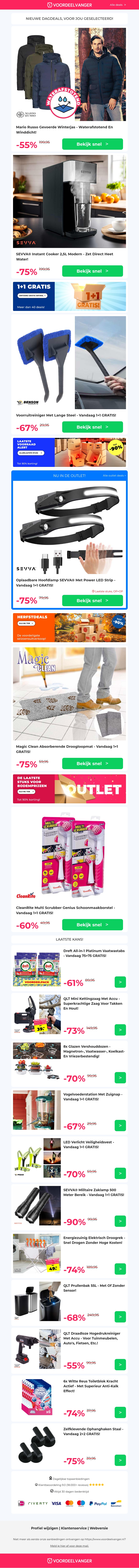 Profiteer van spectaculaire kortingen op diverse producten! Ontdek de Mario Russo waterafstotende winterjassen met 55% korting. Upgrade je keuken met de Instant Cooker en geniet van 75% korting. Mis ook de 1+1 deals op handige huishoudelijke producten zoals droogloopmatten en voorruitreinigers niet.