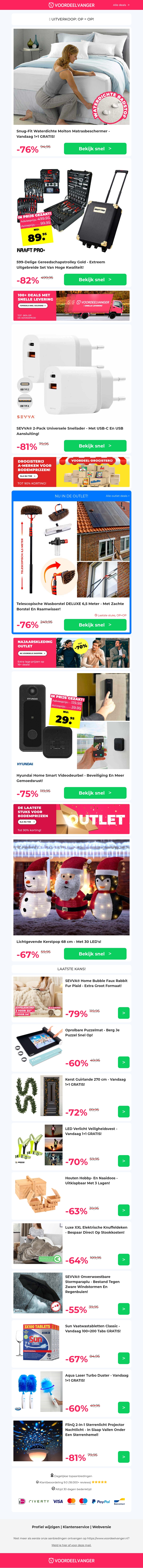 Beleef fantastische aanbiedingen met onze 1+1 gratis actie op de waterdichte molton. Vind ook geweldige kortingen op gereedschapstrolleys, snelladers, en smart videodeurbellen. Mis de lichtgevende kerstpoppen niet om je feestdagen op te vrolijken. Profiteer van de uitverkoop en bereid je voor op de feestdagen met spectaculaire besparingen.