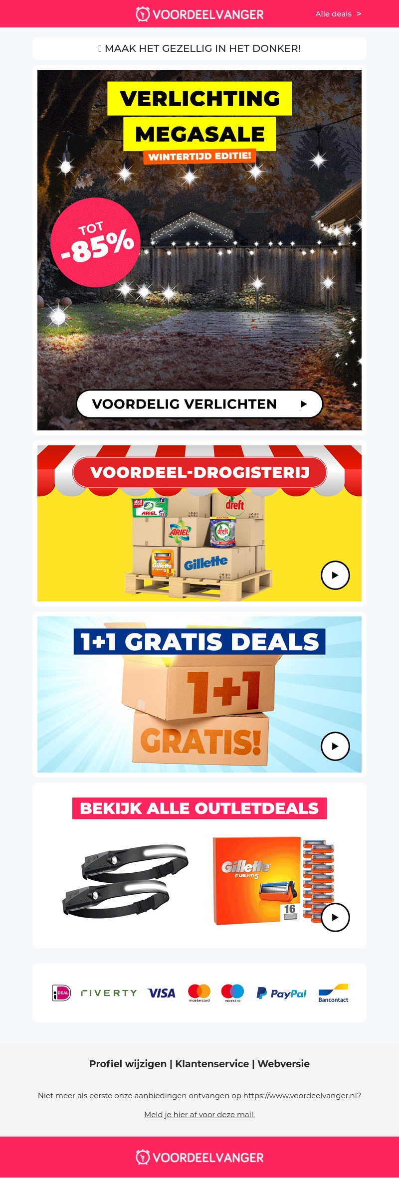 De Wintertijd Megasale is hier met ongelofelijke kortingen tot 85% op verlichting. Maak je huis gezellig en verlicht met de beste deals. Bezoek de Voordeel-Drogisterij voor voordelige aanbiedingen en 1+1 gratis deals. Bekijk ook alle outletdeals voor extra besparing. Mis het niet!