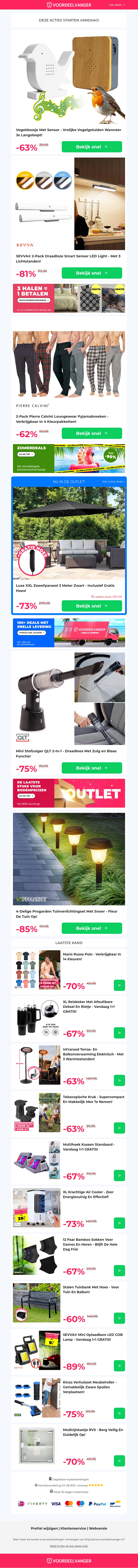 Profiteer van geweldige kortingen op diverse producten zoals het Zingend Sensor Vogeldoosje, handige Sensor Lichten, comfortabele Loungewear Pyjamabroeken, de compacte Mini Stofzuiger, en de stijlvolle Tuinverlichtingset. Bezoek onze website voor meer informatie.