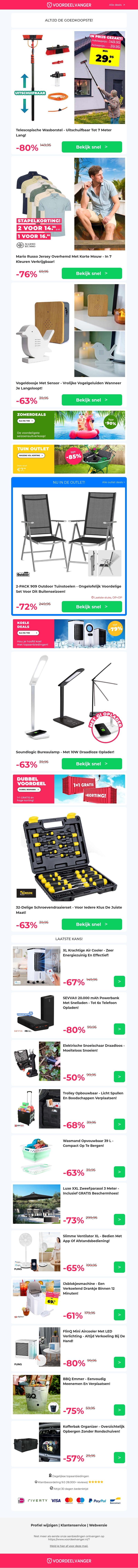 €10 EXTRA Korting: Telescopische Wasborstel / Mario Russo Overhemd / Vogeldoosje / Bureaulamp / Schroevendraaierset