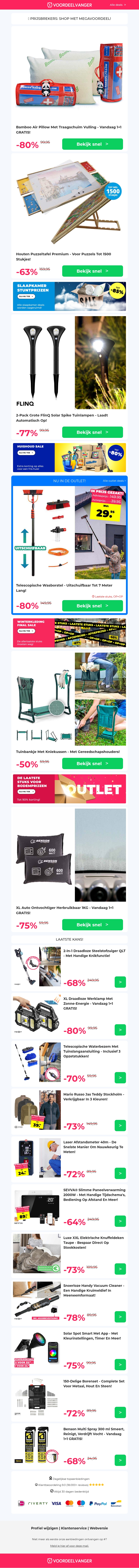 Deze nieuwsbrief biedt spannende aanbiedingen zoals 1+1 gratis op bamboe luchtkussens, puzzeltafels en nog veel meer. Ontdek eco-vriendelijke producten zoals de Flinq Solar Spike en praktische oplossingen zoals de Auto Ontvochtiger. Mis de kans niet om je tuinset, auto en huis accessoires te vernieuwen met aantrekkelijke kortingen!
