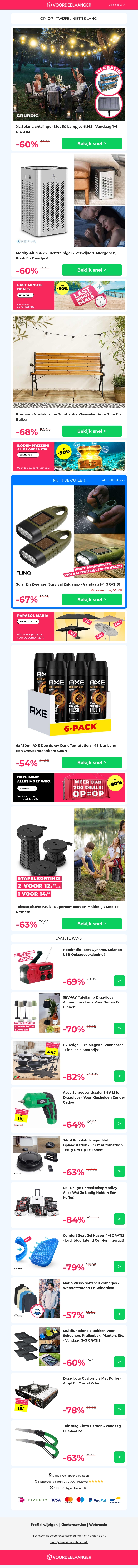 1+1 GRATIS π Solar Lichtslinger XL / Medify Air Luchtreiniger / Nostalgische Tuinbank / Axe Deo Spray / Telescopische Kruk