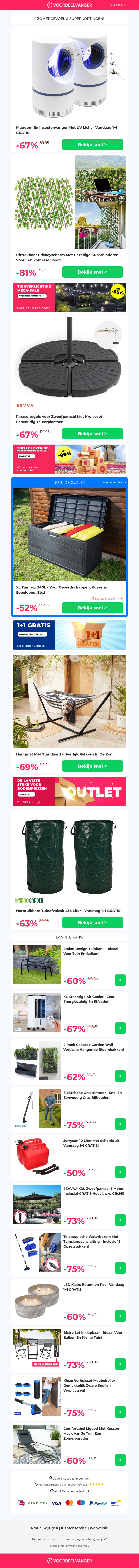 π¦β 1+1 GRATIS: UV Muggenvanger -67% / Privacyscherm Met Bladeren / Parasoltegels / Hangmat Met Standaard / Tuinafvalzak 1+1