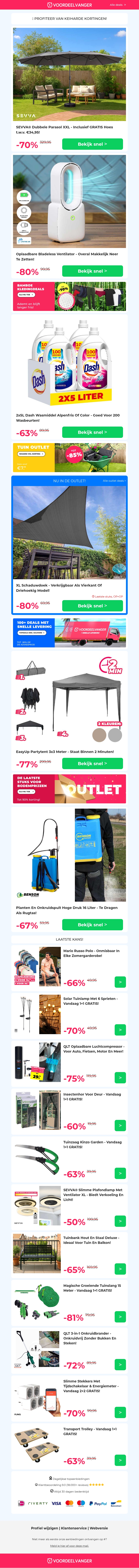π 70% KORTING: Dubbele Parasol (OP=OP) / Bladeless Ventilator / Dash Wasmiddel / EasyUp Partytent / Hogedruk Spuit