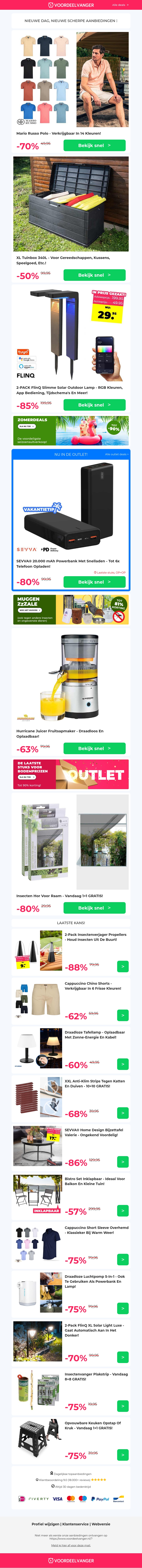 Ontvang tot 70% korting op diverse producten zoals Mario Russo Polo's in 14 kleuren, een ruime tuinbox van 340L, slimme solar tuinlampen, een efficiΓ«nte fruitsapmaker, en handige raam horren. Mis deze aanbiedingen niet en bespaar flink op uw aankopen!