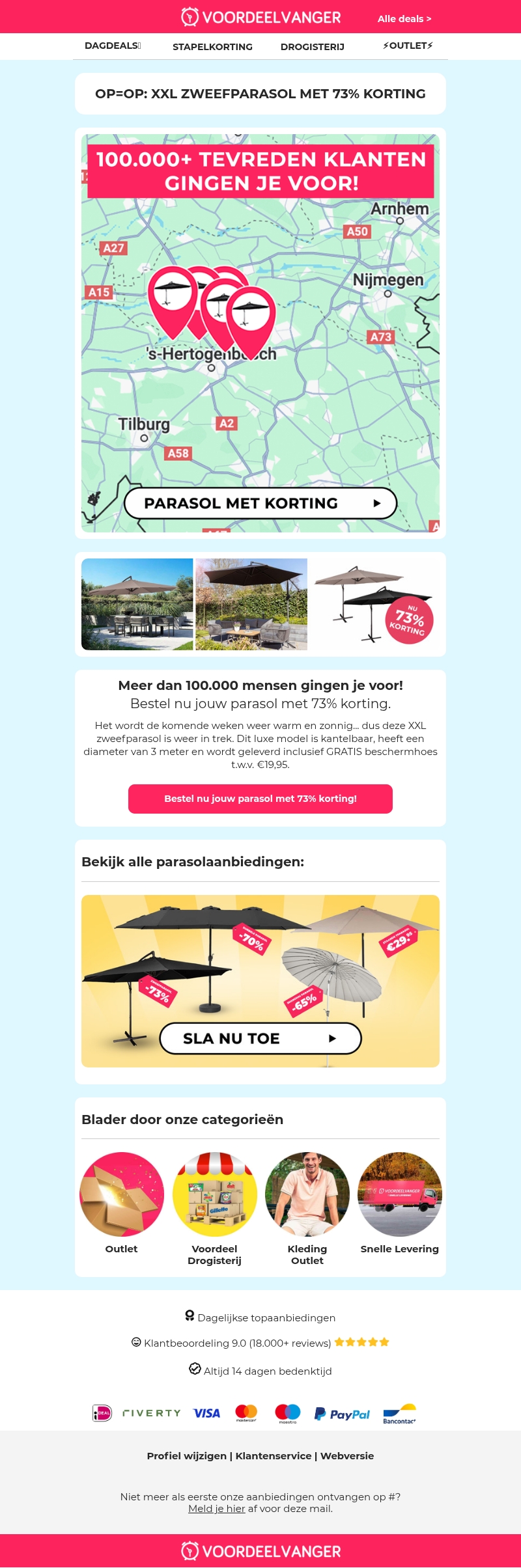 πβ±οΈ Al 100.000+ tevreden klanten: XXL Zweefparasol -73% korting!