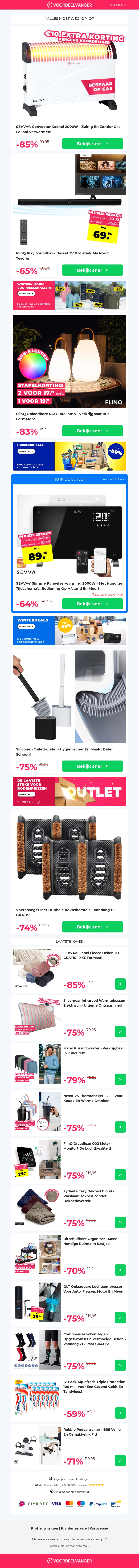 Deze nieuwsbrief biedt geweldige aanbiedingen op kachels voor inkoopprijzen, plus een soundbar, RGB tafellamp, toiletborstel en meer met fantastische kortingen. Mis de kans niet om te besparen op dagelijkse benodigdheden en unieke producten. Verken onze collectie en maak je huis nog stijlvoller en comfortabeler.