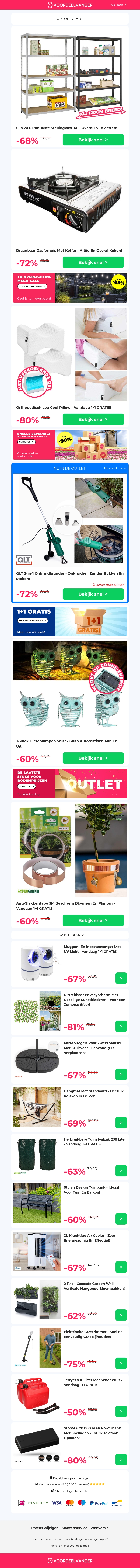 ✅ Kleine Prijs: XL Stellingkast -68% KORTING / Draagbaar Gasfornuis / Leg Cool Pillow 1+1 / 3x Solar Dierenlampen / Anti-Slakkentape 1+1