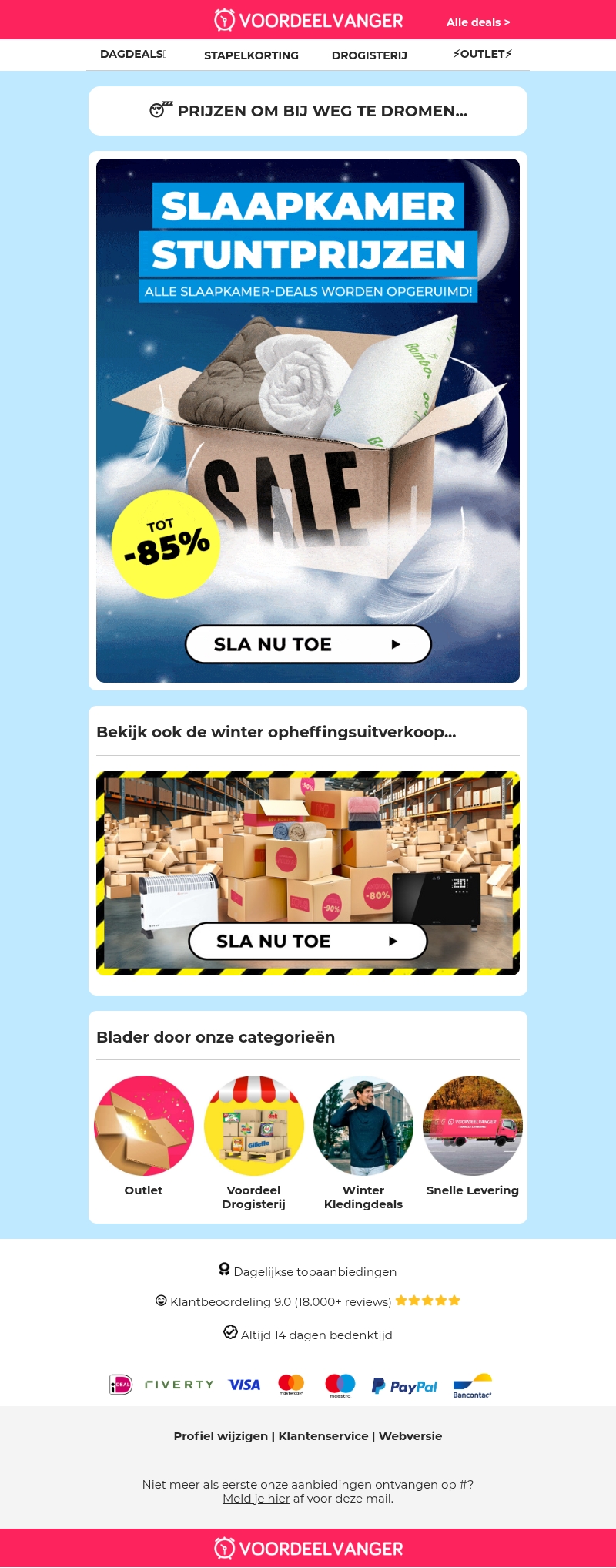 Ontdek onze slaapkamer deals met ongelooflijke kortingen tot 85%. Sla snel toe voordat de voorraad op is en upgrade je slaapkamer luxueus voor minder. Vergeet niet, de aanbiedingen gelden maar tijdelijk, dus grijp je kans nu! Of je nu een nieuw dekbed, kussens of andere accessoires zoekt, alles is beschikbaar tegen stuntprijzen. Bezoek onze winteruitverkoop voor nog meer fantastische deals.