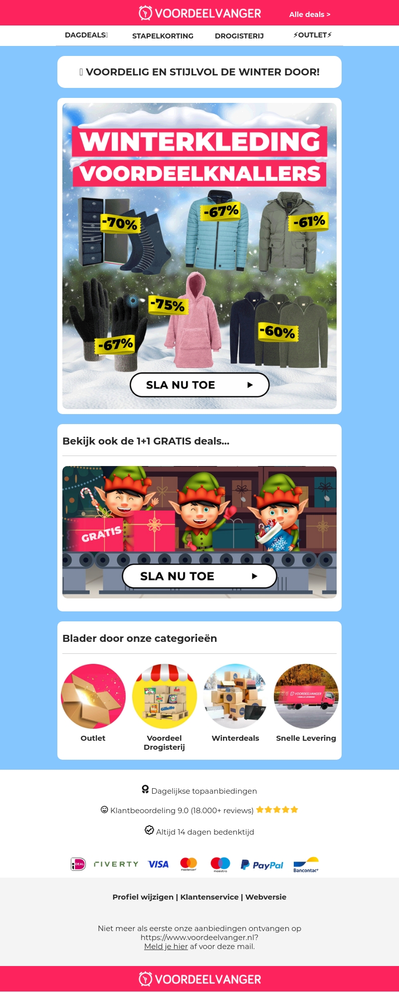 Mis deze laatste kans niet om te profiteren van geweldige kortingen op winterkleding! Ontdek onze collectie en bespaar tot 75% op jassen, truien, sokken en meer. Haast je, want deze deals zijn snel weg! Bekijk nu ook de 1+1 gratis deals en shop razendsnel. Dagelijkse topaanbiedingen met uitstekende klantbeoordelingen.