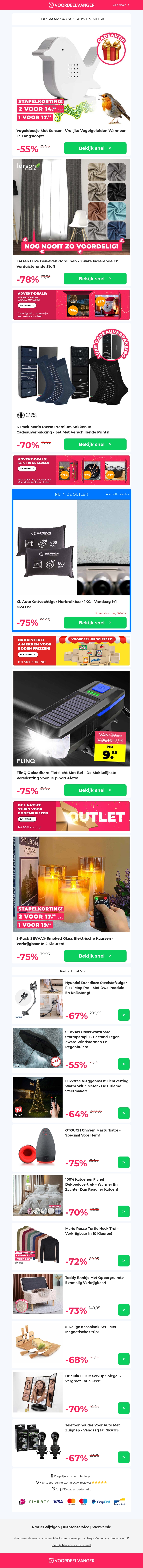 Profiteer van grote kortingen met onze must-have cadeaus. Bespaar tot 75% op een vogeldoosje met sensor, geweven gordijnen, premium sokken, en andere unieke producten. Mis deze geweldige deals niet. Perfect voor het kerstseizoen en als cadeau-ideeΓ«n. Geniet van exclusieve kortingen en maak uw vakantie extra speciaal.