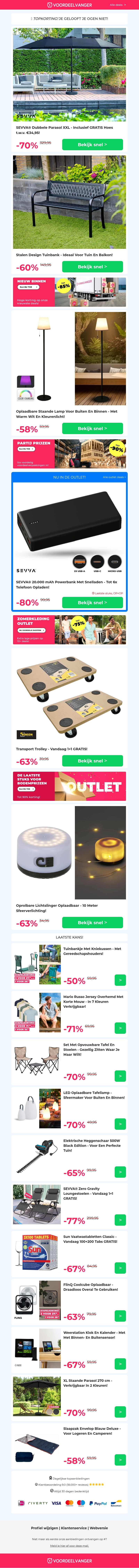 π₯΅ Nergens Goedkoper: Dubbele Parasol -70% Korting / Tuinbank / Oplaadbare Buitenlamp / Transport Trolley 1+1 / Lichtslinger
