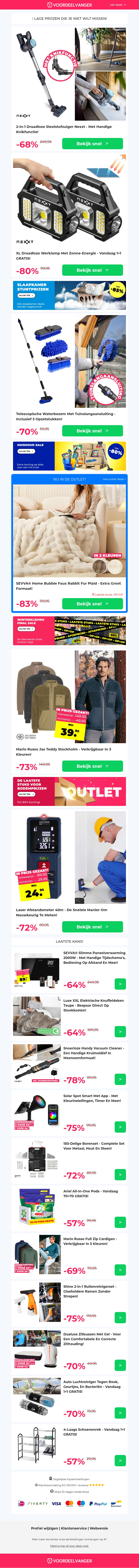 Deze week bieden we een reeks fantastische kortingen aan op innovatieve huishoudartikelen en trendy mode. Geniet van een draadloze steelstofzuiger voor ultiem gemak en een XL werklamp die helderheid garandeert. Vergeet niet de stijlvolle teddy jassen en nauwkeurige laser afstandsmeter te bekijken. Profiteer van de 1+1 gratis deals en hoge kortingen. Mis deze kans niet om te besparen op essentiΓ«le items!