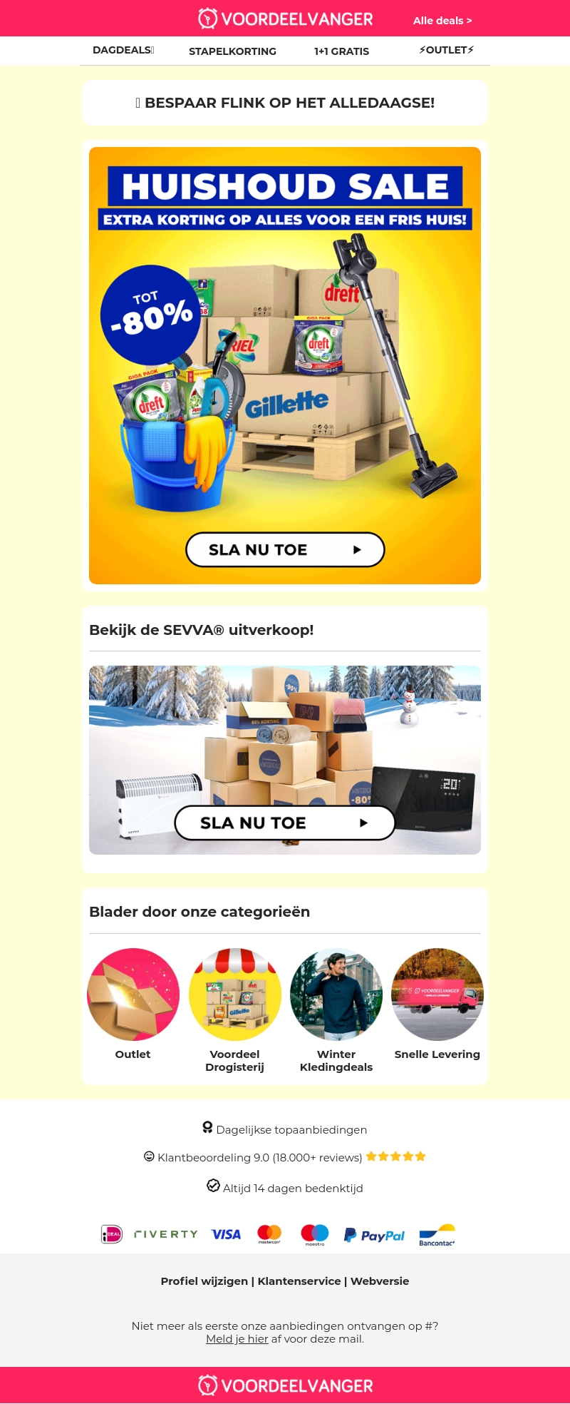 Profiteer van ongelooflijke kortingen op essentiΓ«le huishoudartikelen bij onze Huishoud Sale. Ontvang tot 80% korting op alles voor een fris en schoon huis. Verken ook onze SEVVA uitverkoop voor nog meer deals.