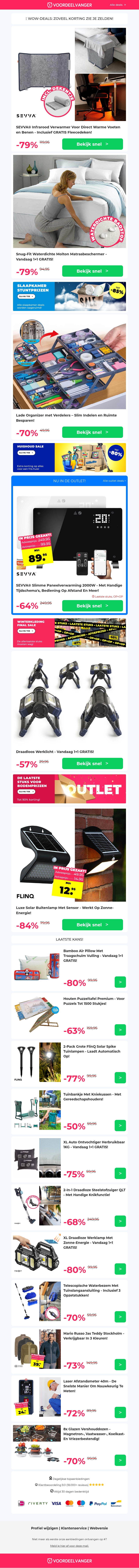 Profiteer van geweldige kortingen op diverse huis- en tuinproducten. Van infrarood verwarmers met fleece tot waterdichte moltons en handige lade-organizers. Ontdek ook de aanbieding voor een werklicht set en solar buitenlampen. Deze scherpe deals zijn nu beschikbaar, dus wees er snel bij!