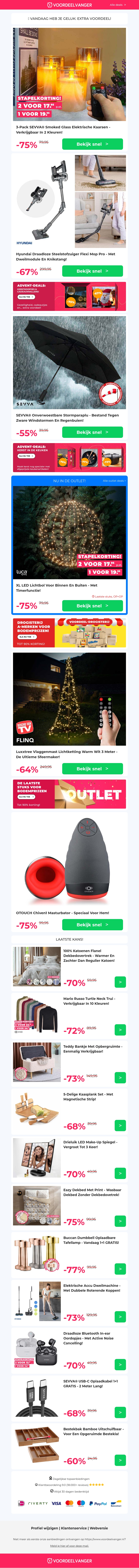 Mis deze geweldige aanbiedingen niet op smoked glass elektrische kaarsen, draadloze steelstofzuigers, en stormparaplu's. Geniet nu van extra stapelkorting en ontdek mooie producten zoals Luxxtree en Chiven1. Of je nu op zoek bent naar decoratie of handig huishoudelijk gereedschap, er is voor ieder wat wils. Profiteer snel van deze geweldige kortingen voor ze weg zijn. Bekijk het volledige aanbod nu online!
