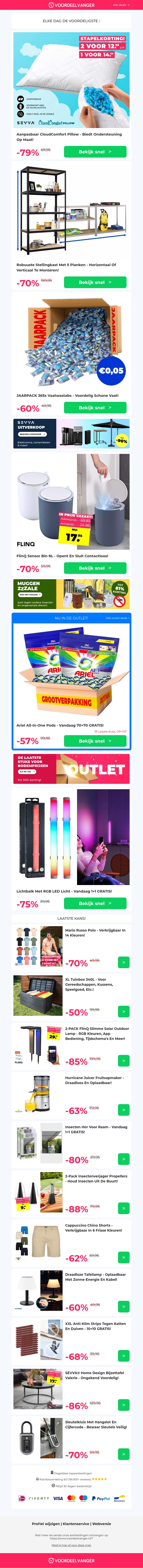 Ontvang nu tot wel 79% korting op een breed scala aan producten, waaronder CloudComfort kussens, robuuste stellingkasten, vaatwastabs, en trendy LED lichtbalken. Shop nu om te profiteren van deze geweldige aanbiedingen en meer. Mis het niet!