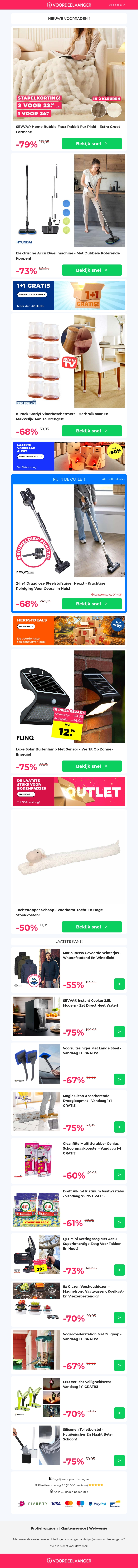 Ontdek de nieuwste aanbiedingen met kortingen tot 79%. Geniet van een warme Bubble Fleece Deken, een efficiΓ«nte elektrische dweilmachine, praktische vloerbeschermers, stijlvolle solar buitenlampen en een tochtstopper voor comfort. Dit is de kans om uw interieur te upgraden met hoge kortingen. Vergeet niet te profiteren van de speciale stapelkorting. Bezoek nu voor meer informatie!