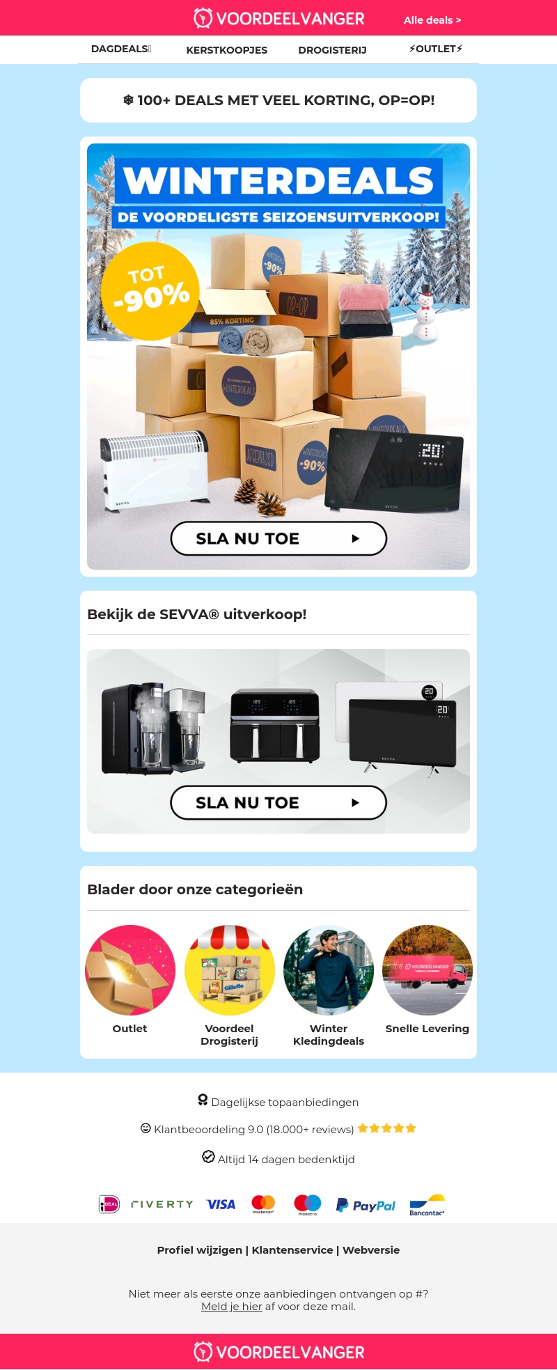 Ontdek de beste winterdeals met kortingen tot wel 90% op diverse producten zoals elektrische kachels en warme dekens. Perfect voor het koude seizoen, biedt deze uitverkoop een breed scala aan huishoudelijke apparaten. Sla nu je slag en geniet van onze topaanbiedingen. Wees er snel bij, want op=op!